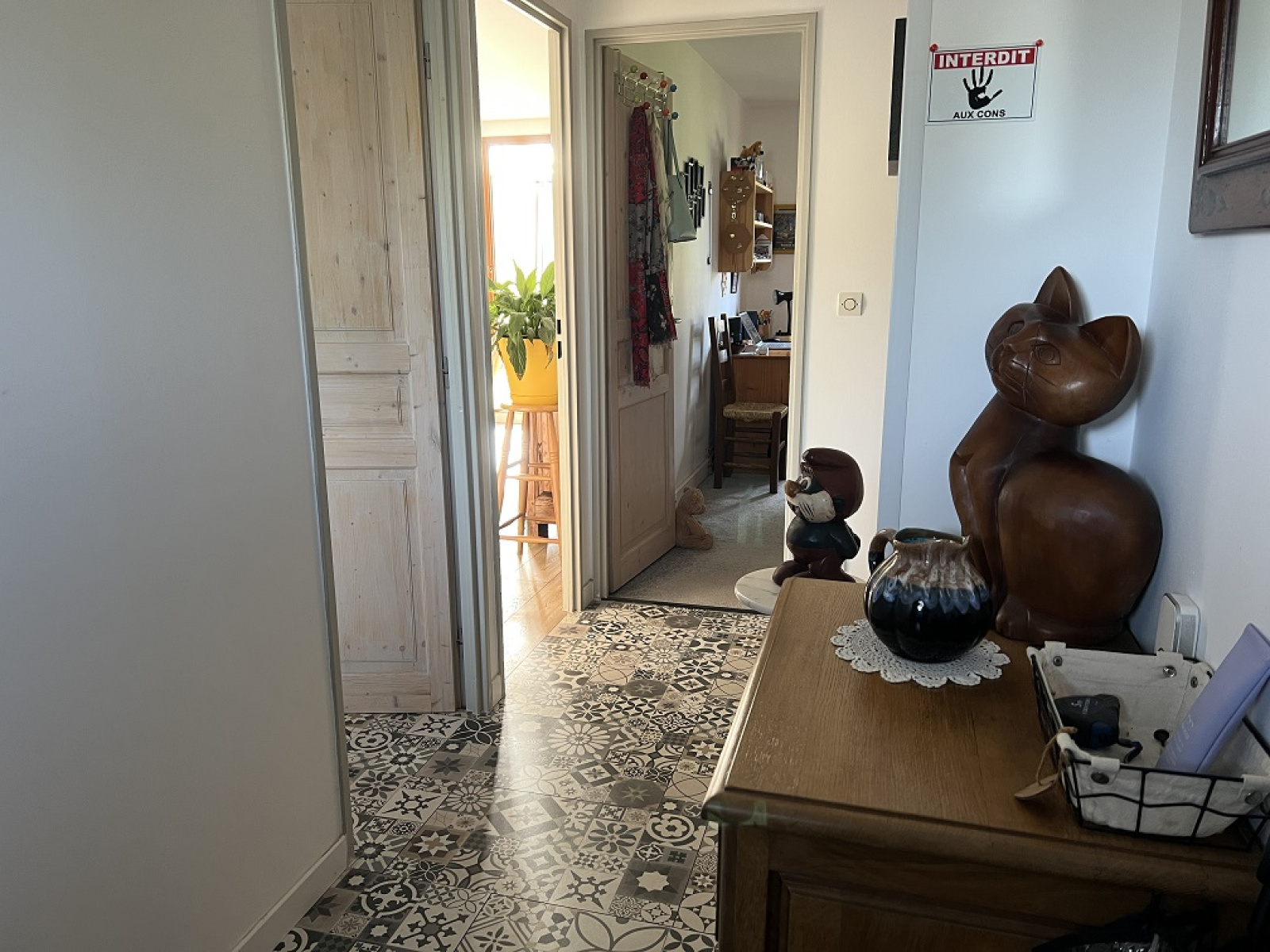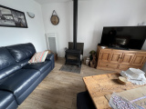 Elle comprend un hall d'entrée, un salon/séjour avec poêle à bois, une cuisine équipée semi-ouverte, 4 chambres dont 2 avec placard, une salle de douche et une buanderie.